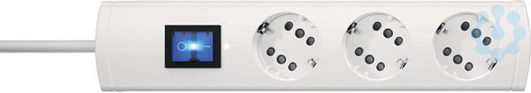 DUOversal Plus, 3=6, je Steckdosentopf Anschlussmöglichkeit für einen Schutzkontakt- oder zwei Eurostecker, mit 2-poligem beleuchteten Schalter, mit erhöhtem Berührungsschutz, mit 35° gedrehten Töpfen,Topfabstand 52mm, Zuleitung H05VV-F3G1,5mm², 1,4m, anschraubbar, 16A, 250V~, Farbe: weiß