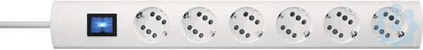 DUOversal Plus, 6=12, je Steckdosentopf Anschlussmöglichkeit für einen Schutzkontakt- oder zwei Eurostecker, mit 2-poligem beleuchteten Schalter, mit erhöhtem Berührungsschutz, mit 35° gedrehten Töpfen,Topfabstand 52mm, Zuleitung H05VV-F3G1,5mm², 1,4m, anschraubbar, 16A, 250V~, Farbe: weiß