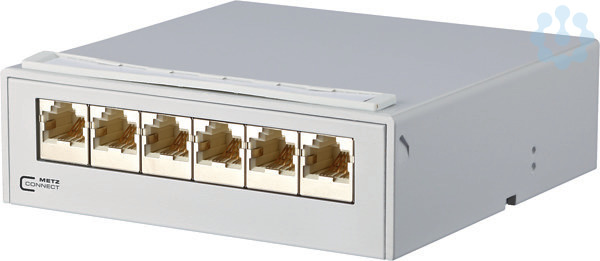 6 Port Aufputz Verteiler oder Anschlussdose für die strukturierte Gebäudeverkabelung, Cat.5e Class E Link Performance nach ISO/IEC11801 Ed.2.2:2011-06, DIN EN 50173-1:2011-09, für 1 GBit Ethernet (IEEE 802.3an), Remote Powering (PoE, PoE plus, UPoE und 4PPoE) und HDBaseT geeignet, für Remote Powering (PoE, PoE plus und UPoE) und HDBaseT geeignet, Farbe RAL 7035 lichtgrau und RAL 9010 reinweiß, Sichtfenster für beiliegende Beschriftungseinlage, Beschriftungsbogen 210 x 297 mm siehe Zubehör, Varianten: reinweiß, lichtgrau