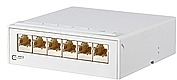 6 Port Aufputz Verteiler oder Anschlussdose für die strukturierte Gebäudeverkabelung, Cat.5e Class E Link Performance nach ISO/IEC11801 Ed.2.2:2011-06, DIN EN 50173-1:2011-09, für 1 GBit Ethernet (IEEE 802.3an), Remote Powering (PoE, PoE plus, UPoE und 4PPoE) und HDBaseT geeignet, für Remote Powering (PoE, PoE plus und UPoE) und HDBaseT geeignet, Farbe RAL 7035 lichtgrau und RAL 9010 reinweiß, Sichtfenster für beiliegende Beschriftungseinlage, Beschriftungsbogen 210 x 297 mm siehe Zubehör, Varianten: reinweiß, lichtgrau