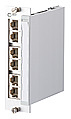 Modulträger mit 6 E-DAT modul Einzelmodulen, Cat.6, A Komponentenprüfung nach ISO/IEC 11801 Ed.2.2:2011-06, DIN EN 50173-1:2011-09, TIA/EIA-568-C.2 (2009-08) und IEC 60603-7-51 Ed.1 (12/2008), GHMT zertifiziertEinhaltung der Klasse E, A nach ISO/IEC 11801 Ed.2.2:2011-06, DIN EN 50173-1:2011-09getestet: Link bis 500 MHz, für 10 GBit Ethernet (IEEE 802.3an), Remote Powering (PoE, PoE plus, UPoE und 4PPoE) und HDBaseT geeignet, montagefreundlicher Anschluss der 2- bis 4-paarigen Datenleitung AWG 26/1 - 22/1 und Litzenleiter mit 7-drähtiger Cu-Litze AWG 26/7 - 22/7 an BTR 8fach IDC-Schneidklemmen, Kennzeichnung der Adernbelegung T568A oder T568B, Zugentlastung per Kabelbinder direkt am Ladestück des E-DAT modul, 3HE Modulträgerfront aus silber eloxiertem Aluminium zum Einbau in 3HE Baugruppenträger, mit Sichtfenster für beiliegende Beschriftungseinlagen, zusätzliche Zugentlastung mittels Kabelbinder möglich, Erdungsbolzen M6 x 10 mit Mutter und Zahnscheibe
