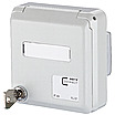 Abschließbare IP44 Dose, mit zwei Schlüsseln mit gleichschließendem Schloss (gleiche Schlösser und Schlüssel), Deckel schließt vollständig, auch bei eingesteckten Patchkabeln, UP-Gehäuse für Brüstungskanaleinbau, oder in Verbindung mit der UP-Einbaudose für Unterputz, Für zwei Einzelmodule in Modulbauform, Ballwurfsicher nach DIN 18032, mit handelsüblichen Patchkabeln betreibbar, gut sichtbares Beschriftungsfeld, Varianten: reinweiß, grau