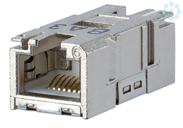 Cat.6 Klasse E RJ45 Kupplung zum Einbau in Flanschgehäuse IP67 der Varianten 1, 4, 5, und 14, in Verbindung mit der Universal Prüfbuchse einsetzbar mit Schutzart IP65, Einhaltung der Klasse E nach ISO/IEC 11801 Ed.2.2:2011-06, DIN EN 50173-1:2011-09, für 10 GBit Ethernet (IEEE 802.3an), Remote Powering (PoE, PoE plus, UPoE) und HDBaseT geeignet, sehr kompakte Bauform, symmetrischer Aufbau, beliebig einbaubar, FS 2,8 Erdanschluss für Potenzialausgleich auf beiden Stirnseiten, erhöhte Vibrations- und Schockfestigkeit durch 4 Federn an den Schirmblechen, robustes Zinkdruckgussgehäuse