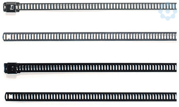 MAT-Metallkabelbinder, rostfreier Edelstahl SS316. Verschluss durch Eingreifen der Zunge in die Rasterung des Bandes. Beschichtet MAT-Serie (Polyester) zur Vermeidung von Kontaktkorrosion und für verbesserten Installationskomfort. Die HellermannTyton MAT Kabelbinder aus Edelstahl eignen sich für den Einsatz in extremer Umgebung oder wo immer zusätzliche Sicherheit oder erhöhter Brandschutz erforderlich ist. Sie werden in den Breichen Schienenfahrzeug, Schiffbau, auf Ölplattformen, im Bergbau und in der chemisch-technischen Industrie ebenso angewandt wie im Außenbereich der Funktechnik, in Theatern oder Austellungshallen. Im Brandfall werden die Kabel sicher gehalten und blockieren somit z.B. keine Fluchtwege und Notausgänge.