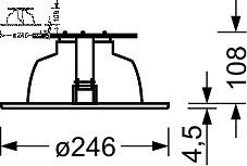 Gehäuse aus Stahlblech mit Abdeckring aus Aluminium-Druckguss ähnlich Ral 7032 kieselgrau lackiert, mit transluzenter Glasscheibe aus Sicherheitsglas, mit Treiber betriebsfähig verdrahtet, Aluminium-Kühlkörper für effektive Passivkühlung. Mit Befestigungsfedern für werkzeuglose Montage, geeignet für Deckenstärken von 10mm-25mm. Lichtverteilung direkt breitstrahlend mittels hochglänzendem, stückeloxiertem Reflektor aus Reinstaluminium, mit transluzenter Abdeckung aus Sicherheitsglas. Externer Treiber mit Leuchte betriebsfähig verdrahtet. Elektrischer Anschluss und Anschluss der Steuerleitung über 5-polige Anschlussklemme in Steckkontakt-Technik.