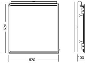 argon Einbau-/Einlegeleuchte 6025 37 Watt LED DALI prismatische Abdeckung befestigt in Alurahmen, DA 605x605mm 3800 lm, CRI>80, 4000 K, 620 x 620 x 100 mm, IP43