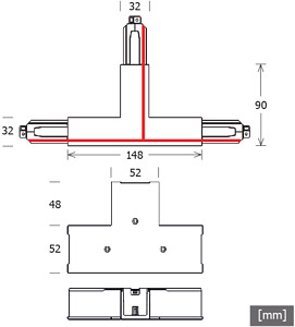 T-Verbinder mit Polarität außen rechts und Einspeisung, Material: Polycarbonat, kupferlegierte Kontakte, max. elektrische Belastung: Wechselstromnetz 3.6 kVA, Drehstromnetz 3 x 3.6 kVA = 10.8 kVA, Nennstrom und Nennspannung: 16 A / 440 V (1 A / 50 V AC FELV), werkzeuglose Einrastbefestigung, Schraubkontakte Normen: CE, ENEC, RoHS Abmessungen (LxBxH): 148 x 52 x 38 mm