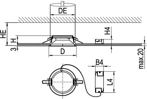 Einbaudownlight Durchmesser 235 mm mit RIDI LED-Modul und Passivkühlkörper, bestehend aus Reflektorgehäuse und Geräteträger. Stabile Aluminiumplatte mit werkzeuglos zu betätigenden Befestigungsklammern für den Deckeneinbau. Darunter angebrachter Light-Engine mit Funktionsmodul aus weißem Polycarbonat, zur Aufnahme des Reflektors über Bajonettverschluss. Diffusor aus transparentem, innen satiniertem Polycarbonat zum Schutz der LEDs. Hocheffizientes RIDI-LED-Modul bestückt mit Mid-Power-LEDs für gleichmäßige Ausleuchtung und maximale Effizienz. Treiber als unabhängiges Gerät mit Netzanschlussklemme, Kabelzugentlastung und Verbindungsleitung zum LED-Modul. Leuchte geeignet für den Einsatz in Notbeleuchtungsanlagen. Schutzart raumseitig IP44, deckenseitig IP20. Schutzklasse I. Hinweis: Anschlussklemmen für eine Leitung max. 1,5 mm². Zur Durchgangsverdrahtung von Leuchte zu Leuchte ist Zubehör Anschlussleitungen und T-Verbinder separat zu bestellen. Durchmesser 235 mm. Reflektor weiß (ähnlich RAL9016, reflexionsve