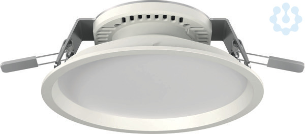 Einbaudownlight Durchmesser 195 mm mit RIDI LED-Modul und Passivkühlkörper, bestehend aus Reflektorgehäuse und Geräteträger. Stabile Aluminiumplatte mit werkzeuglos zu betätigenden Befestigungsklammern für den Deckeneinbau. Darunter angebrachter Light-Engine mit Funktionsmodul aus weißem Polycarbonat, zur Aufnahme des Reflektors über Bajonettverschluss. Diffusor aus transparentem, innen satiniertem Polycarbonat zum Schutz der LEDs. Hocheffizientes RIDI-LED-Modul bestückt mit Mid-Power-LEDs für gleichmäßige Ausleuchtung und maximale Effizienz. Treiber als unabhängiges Gerät mit Netzanschlussklemme, Kabelzugentlastung und Verbindungsleitung zum LED-Modul. Schutzart raumseitig IP44, deckenseitig IP20. Hinweis: Anschlussklemmen für eine Leitung max. 1,5 mm². Zur Durchgangsverdrahtung von Leuchte zu Leuchte ist Zubehör Anschlussleitungen und T-Verbinder separat zu bestellen. Durchmesser 195 mm. Reflektor weiß (ähnlich RAL9016, reflexionsverstärkt), aus Polycarbonat, mit Scheibe. Montage: Befestigungsklammern für K