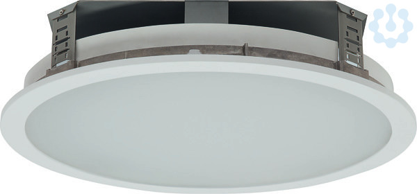 Einbaudownlight Durchmesser 410 mm. Stabiler Einbauring aus Metalldruckguss mit werkzeuglos zu betätigenden Befestigungsklammern für den Deckeneinbau. Integrierte Haltevorrichtung zur werkzeuglosen Aufnahme des Dekorrings bzw. Zubehörs. Dekorring aus weißem Polycarbonat mit Bajonettverschluss. LED-Module als Flächenplatine ausgebildet. Mid-Power-LEDs für gleichmäßige Ausleuchtung und maximale Effizienz. LED-Treiber in Leuchtengehäuse eingebaut. Schutzart raumseitig IP44, deckenseitig IP20. Abdeckscheibe opal, satiniert, aus UV-beständigem PMMA. Homogene Ausleuchtung der Scheibe ohne sichtbare LED-Punkte. Montage: Montage in gesägten Deckenöffnungen. Befestigungsklammern für Klemmdicken von 0 bis 25 mm.