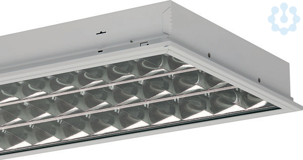 Einbauindustrieleuchte, Schutzart IP64 raumseitig und IP54 deckenseitig, Einzelleuchte geschlossen. Inklusive RIDI-LED-Leuchtmittel L-TUBE-B. Stabiles Leuchtengehäuse aus verzinktem Stahlblech, weiß pulverbeschichtet, Farbe ähnlich RAL9016. Eingebauter Kopfspiegelreflektor aus reflexionsverstärktem Reinstaluminium mit Silberbeschichtung, matt eloxiert. Schmaler Rahmen aus Aluminium-Strangpressprofil mit Scheibe aus schlagzähem, UV-beständigem PMMA. Rahmen mit Federbügeln unsichtbar im Leuchtengehäuse gehalten, beidseitig abklappbar mit automatischer Verbindung zum Schutzleiter. Schutzartbedingte Dichtungen und Dichtung umlaufend in Leuchtenrand geschäumt für die Abdichtung zur Decke. Scheibe aus PMMA klar, zur Entblendung Parabolspiegelraster SM aus reflexionsverstärktem, matt eloxiertem Reinstaluminium mit Silberbeschichtung. Reflektor aus reflexionsverstärktem, matt eloxiertem Reinstaluminium mit Silberbeschichtung, symmetrisch strahlend. Montage: Vorbereitet für den Einbau in verschiedene Deckensysteme mit