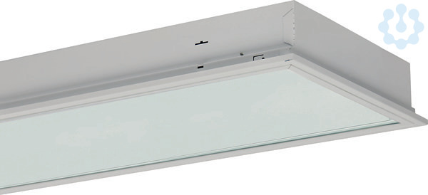 Einbauindustrieleuchte, Schutzart IP64 raumseitig und IP54 deckenseitig, Einzelleuchte geschlossen. Inklusive RIDI-LED-Leuchtmittel L-TUBE-B. Stabiles Leuchtengehäuse aus verzinktem Stahlblech, weiß pulverbeschichtet, Farbe ähnlich RAL9016. Eingebauter Kopfspiegelreflektor aus reflexionsverstärktem Reinstaluminium mit Silberbeschichtung, matt eloxiert. Schmaler Rahmen aus Aluminium-Strangpressprofil mit Scheibe aus schlagzähem, UV-beständigem PMMA. Rahmen mit Federbügeln unsichtbar im Leuchtengehäuse gehalten, beidseitig abklappbar mit automatischer Verbindung zum Schutzleiter. Schutzartbedingte Dichtungen und Dichtung umlaufend in Leuchtenrand geschäumt für die Abdichtung zur Decke. Scheibe SB aus PMMA, klar. Reflektor aus reflexionsverstärktem, matt eloxiertem Reinstaluminium mit Silberbeschichtung, symmetrisch strahlend. Montage: Vorbereitet für den Einbau in verschiedene Deckensysteme mit entsprechendem Befestigungssatz (Zubehör) oder Einlegemontage in Deckensysteme mit sichtbaren Tragschienen und eingele