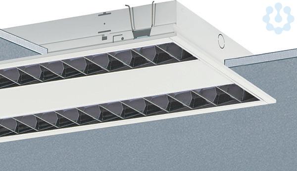 LED-Einbauleuchte Einzelleuchte für Deckeneinbau, für Deckenmodul 625. Leuchtenhöhe 60 mm (1-lampig 71 mm). Gehäuse aus Stahlblech, mit 5 mm niedrigem Rand, weiß (ähnlich RAL9016) beschichtet. Lichtlenker mit Federbügeln im Leuchtengehäuse gehalten, beidseitig abklappbar und automatisch mit dem Schutzleiter verbunden. Schutzart IP20. Für Leuchtmittel RIDI-TUBE. Parabolspiegelraster SM aus hochreflektierendem, seidenmatt eloxiertem Reinstaluminium mit Silberbeschichtung. Für Leuchtmittel RIDI-TUBE. Montage: Einbau in verschiedene Deckensysteme mit entsprechendem Befestigungssatz (Zubehör) oder Einlegemontage in Deckensysteme mit sichtbaren Tragschienen und eingelegten Deckenplatten. Für die Einlegemontage ist kein zusätzliches Befestigungszubehör erforderlich.