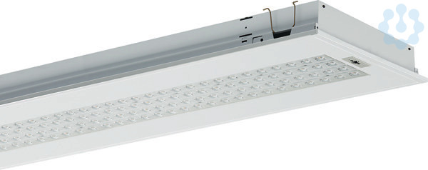 LED-Einbauleuchte Einzelleuchte für Deckeneinbau, für Deckenmodul 625. Stabiles Leuchtengehäuse aus Stahlblech, weiß (ähnlich RAL9016). Linsenoptikarrays für maximale Effizienz, 4-reihig mit quadratisch ausgeprägter Linsenformgebung. Lichtlenker mit Federbügeln im Leuchtengehäuse gehalten, beidseitig abklappbar. LED-Module als Flächenplatine ausgebildet. Mid-Power LEDs für gleichmäßige Ausleuchtung und maximale Effizienz. LED-Treiber in Leuchte eingebaut. Montage: Einbau in verschiedene Deckensysteme mit entsprechendem Befestigungssatz, oder Einlegemontage in Deckensysteme mit sichtbaren Tragschienen und eingelegten Deckenplatten. Für die Einlegemontage ist kein zusätzliches Befestigungszubehör erforderlich.