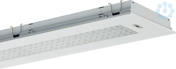 LED-Einbauleuchte Einzelleuchte für Deckeneinbau, für Deckenmodul 625. Stabiles Leuchtengehäuse aus Stahlblech, weiß (ähnlich RAL9016). Linsenoptikarrays für maximale Effizienz, 4-reihig mit quadratisch ausgeprägter Linsenformgebung. Lichtlenker mit Federbügeln im Leuchtengehäuse gehalten, beidseitig abklappbar. LED-Module als Flächenplatine ausgebildet. Mid-Power LEDs für gleichmäßige Ausleuchtung und maximale Effizienz. LED-Treiber in Leuchte eingebaut. Montage: Einbau in verschiedene Deckensysteme mit entsprechendem Befestigungssatz, oder Einlegemontage in Deckensysteme mit sichtbaren Tragschienen und eingelegten Deckenplatten. Für die Einlegemontage ist kein zusätzliches Befestigungszubehör erforderlich.