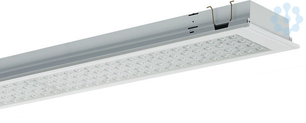 LED-Einbauleuchte Einzelleuchte für den Einbau in Metallpaneeldecken. Stabiles Leuchtengehäuse aus Stahlblech, weiß (ähnlich RAL9016) pulverbeschichtet. Linsenoptikarrays für maximale Effizienz, 4-reihig mit quadratisch ausgeprägter Linsenformgebung. Lichtlenker mit Federbügeln im Leuchtengehäuse gehalten, beidseitig abklappbar. LED-Module als Flächenplatine ausgebildet. Mid-Power LEDs für gleichmäßige Ausleuchtung und maximale Effizienz. LED-Treiber in Leuchte eingebaut. Leuchtenbreite 185 mm, für Modul 100 und 200. Entblendung für bildschirmgerechte Arbeitsplatzbeleuchtung. Montage: Einbau in Metallpaneeldecken parallel zu den Paneelen mit entsprechendem Befestigungszubehör. Nicht für Decken mit Füllstreifen geeignet.