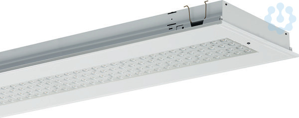 LED-Einbauleuchte Einzelleuchte für Deckeneinbau, für Deckenmodul 625. Stabiles Leuchtengehäuse aus Stahlblech, weiß (ähnlich RAL9016). Linsenoptikarrays für maximale Effizienz, 4-reihig mit quadratisch ausgeprägter Linsenformgebung. Lichtlenker mit Federbügeln im Leuchtengehäuse gehalten, beidseitig abklappbar. LED-Module als Flächenplatine ausgebildet. Mid-Power LEDs für gleichmäßige Ausleuchtung und maximale Effizienz. LED-Treiber in Leuchte eingebaut. Leuchtenlichtstrom im Notlichtbetrieb: ca. 500 lm Montage: Einbau in verschiedene Deckensysteme mit entsprechendem Befestigungssatz, oder Einlegemontage in Deckensysteme mit sichtbaren Tragschienen und eingelegten Deckenplatten. Für die Einlegemontage ist kein zusätzliches Befestigungszubehör erforderlich.