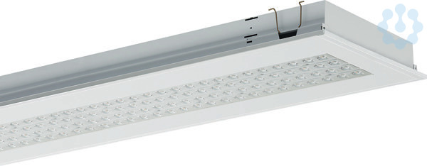 LED-Einbauleuchte Einzelleuchte für den Einbau in Metallpaneeldecken. Stabiles Leuchtengehäuse aus Stahlblech, weiß (ähnlich RAL9016) pulverbeschichtet. Linsenoptikarrays für maximale Effizienz, 4-reihig mit quadratisch ausgeprägter Linsenformgebung. Lichtlenker mit Federbügeln im Leuchtengehäuse gehalten, beidseitig abklappbar. LED-Module als Flächenplatine ausgebildet. Mid-Power LEDs für gleichmäßige Ausleuchtung und maximale Effizienz. LED-Treiber in Leuchte eingebaut. Leuchtenbreite 285 mm, für Modul 100, 150 und 300. Entblendung für bildschirmgerechte Arbeitsplatzbeleuchtung. Montage: Einbau in Metallpaneeldecken parallel zu den Paneelen mit entsprechendem Befestigungszubehör. Nicht für Decken mit Füllstreifen geeignet.