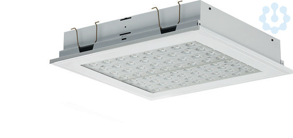 LED-Einbauleuchte Einzelleuchte für Deckeneinbau. Stabiles Leuchtengehäuse aus Stahlblech, weiß (ähnlich RAL9016) pulverbeschichtet. Linsenoptikarrays für maximale Effizienz, 4-reihig mit quadratisch ausgeprägter Linsenformgebung. Lichtlenker mit Federbügeln im Leuchtengehäuse gehalten, beidseitig abklappbar. LED-Module als Flächenplatine ausgebildet. Mid-Power LEDs für gleichmäßige Ausleuchtung und maximale Effizienz. LED-Treiber in Leuchte eingebaut. Quadratische Bauform. Entblendung für bildschirmgerechte Arbeitsplatzbeleuchtung. Montage: Einbau in gesägte Deckenöffnungen mit entsprechendem Befestigungssatz (Zubehör) .