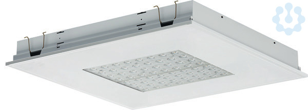 LED-Einbauleuchte Einzelleuchte für Deckeneinbau. Stabiles Leuchtengehäuse aus Stahlblech, weiß (ähnlich RAL9016) pulverbeschichtet. Linsenoptikarrays für maximale Effizienz, 4-reihig mit quadratisch ausgeprägter Linsenformgebung. Lichtlenker mit Federbügeln im Leuchtengehäuse gehalten, beidseitig abklappbar. LED-Module als Flächenplatine ausgebildet. Mid-Power LEDs für gleichmäßige Ausleuchtung und maximale Effizienz. LED-Treiber in Leuchte eingebaut. Quadratische Bauform. Entblendung für bildschirmgerechte Arbeitsplatzbeleuchtung. Montage: Einbau in gesägte Deckenöffnungen mit entsprechendem Befestigungssatz (Zubehör) .