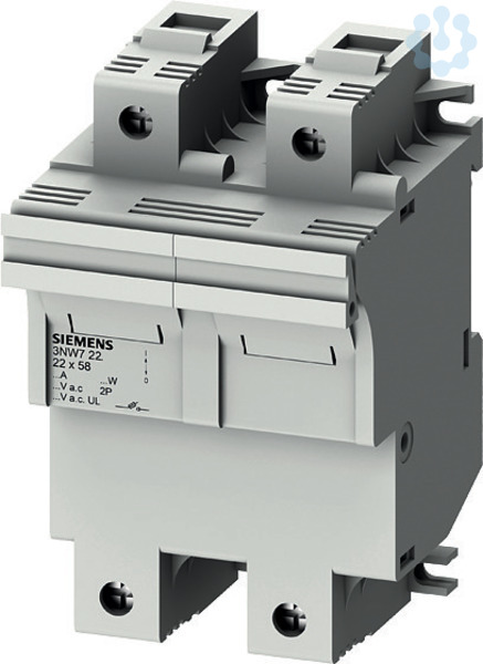 SENTRON, Zylindersicherungshalter, 22x58 mm, 2-polig, In: 100 A, Un AC: 690 V, LED Signalmelder SENTRON Zylindersicherungssystem für den selektiven Anlagenschutz. Siemens Zylindersicherungseinsätze und -sicherungshalter sind für den Einsatz in industriellen Anlagen geeignet. Sie sind in Europa Standard und als Sicherungstrennschalter geprüft und zugelassen aber nicht zum Schalten unter Last vorgesehen. Für das Schalten unter Last bietet Siemens ein umfangreiches Portfolio z.B. 3KF an. Die Siemens Zylindersicherungssysteme zeichnen sich vor allem aus durch: 1. Erfüllung der Normen IEC 60269-1, -2 und -3. 2. Erfüllung der Norm UL 512. 3. Schnellen Sicherungswechsel durch Platz für Ersatzsicherungen im Einschub. 4. Schnelles Erkennen der ausgelösten Sicherung durch blinkende LED im Falle der Auslösung.