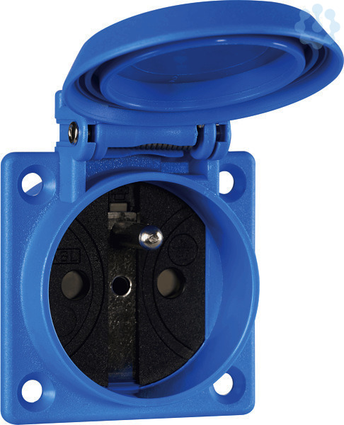 Die Einbausteckdose, mit erhöhtem Berührungsschutz, nach NF C61-314 französischem und NBN C61-112 belgischem Standard besteht aus hochschlagzähem Thermoplast und ist, dank Hammerzeichen, für höchste Belastungen ausgelegt. Als neue Eigenschaft hat ABL den flexiblen Leitungsanschluss entwickelt. Der Kunde hat so die Möglichkeit, die Einbaudose mit Leitungen bis zu 2,5 mm² in alle Richtungen anzuschließen. Einfaches Durchschleifen zum Verdrahten in Reihe ist ein weiterer Pluspunkt. Damit entfällt das mühsame Einfädeln von zwei Drähten in eine Klemme. Die Einbausteckdose mit Flanschbefestigung ist hitze-, kälte- sowie UV-beständig. Sie ist finger- und handrückensicher nach DGUV-V3 und spritzwassergeschützt nach IP54.