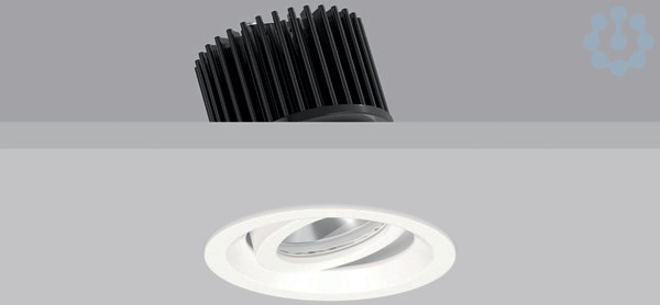 Einbaustrahler mit sehr kleinen Abmessungen. Blende Aluminium-Druckguss pulverbeschichtet. Kaltfließgepresster Kühlkörper Aluminium. Reflektor Aluminium hochglanzeloxiert. Mit Schutzscheibe. ± 25° schwenkbar. Geeignet für Deckeneinbau. Leuchtenbefestigung mit Federsystem. Inklusive Betriebsgerät extern über Steckverbindung, Verbindungsleitung 250 mm. Opale PMMA Kunststoffscheibe als Zubehör beiliegend.