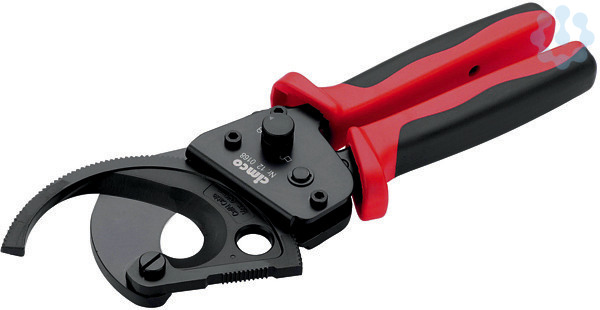 Einhand-Ratschen-Kabelschneider zum quetschfreien Schneiden von Kabeln mit einem Außendurchmesser von max. 45 mm. Geeignet für Kupfer- und Aluminiumkabel, nicht geeignet für Stahldraht, stahlarmierte Kabel und hartgezogene Cu- und Bz-Leiter. Sauberer Schnitt durch scharfe spezialgehärtete Schneiden, trotz kompakter Bauform dank Ratschenmechanik mit nadelgelagerter Exzenterübersetzung und ergonomischen Handgriffen mit geringerÖffnungsweite nur mit einer Hand kraftschonend bedienbar. Die Handgriffe sind jedoch lang genug, um bei Lastspitzen die zweite Hand unterstützend einzusetzen. Gewicht nur 980 g. Bewegliche, voll durchschwenkbare und in jeder Stellung entriegelbare Schneide, leicht austauschbar (Ersatzschwenkmesser Cimco-Artikelnr. 12 9168), Arretierung der Griffe über Drehknopf (rote Markierung), leichteÖffnung der Schneidmesser durch in Offenstellung arretierbarer Sperrklinke. Max. Schneidleistungen Cu ( Kupfer ) max. Durchmesser 45 mm feindrähtig 400 mm³ / 800 MCM mehrdrähtig 300 mm³ / 600 MCM Sektorlei