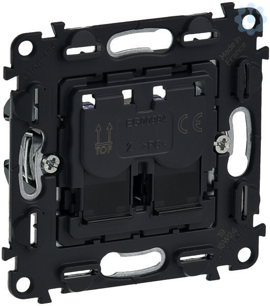 Valena In?Matic, Datendose 2xRJ45, Kat. 6, STP1-fach, geschirmt, Datendosen LCS2 vollgeschirmt. Werkzeuglose Anschlusstechnik LCS2 mit Schnellanschluss-Schneidklemmen. Farbmarkierte Anschlüsse für Belegungsart nach EIA/TIA 568 A und B. Konform nach ISO 11801, EN 50173und EIA/TIA 568.