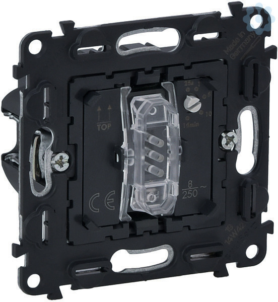 Valena In?Matic, Zeitschalter (SK) Schraubklemmen, 2-Leiter-Anschluss. Nach dem Abschalten läuft die Last für die eingestellte Zeit nach (25 Sek. bis 15 Min.)? Glüh- und 230 V HV-Halogenlampen: 1000 W? NV-Halogenlampen mit elektronischem oder konventionellem Transformator: 400 VA? Leuchtstofflampen mit Vorschaltgerät: 400 VA? LED- oder Kompaktleuchtstofflampen: 400 W? Motoren/Ventilatoren: 250 VAEnthält eine bereits integrierte LED zum Beleuchtendes Schalters.