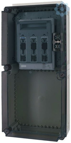 Verteilergehäuse mit 1x NH-Sicherungs-Lasttrennschalter, Material Polycarbonat, schlagfest, Schutzart IP65, glatte Seitenwände, oben/unten mit Flansch FL4-X, Sicherungsunterteil aufgebaut auf Montageplatte aus 3mm Stahlblech, Befestigungslaschen für Wandbefestigung, plombierbare Deckelverschlüsse, Deckel durchsichtig rauchgrau, Klemme für Anschluss des 4. Leiters (PE/N), Bemessungsbetriebsstrom Ie=390 A, Sicherungseinsatz NH2, Nachrüstbare Klemme für den 5. Leiter=K240/1, Sicherungseinsätze bitte separat bestellen.