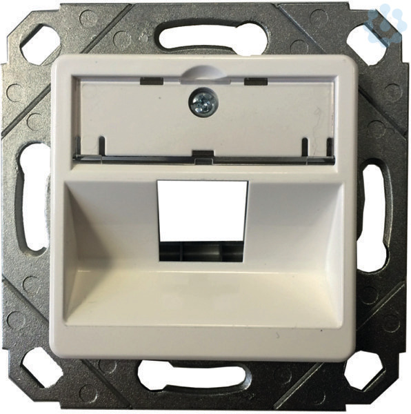 Zentralplatte aus Kunststoff, Tragrahmen aus Zinkdruckguß, Beschriftungsfeld, 45° Schrägauslass, Farbe: Weiß (bei der Kombination mit Produkten anderer Hersteller können geringfügige Farbabweichungen auftreten), Anschlussmöglichkeit für Potentialausgleichsleiter mittels Kabelschuh (gemäß DIN 46342-1 ).