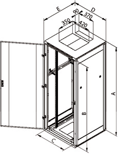 Bestandteil des Verteilers sind 4 (bei Verteilern tiefer als 800 mm: 6) verstellbare vertikale Rasterschienen für die Installation der Komponenten. Verteilerkonstruktion: geschweißte Stahlkonstruktion mit abnehmbaren Wänden. Glastür (Ein- bzw. Zweiflügeltüren in den Ausführungen als Vollblech-, perforierte 80 % Luftdurchlass auf Anfrage erhältlich). Sie können vorn oder hinten am Verteiler montiert werden. Diese Schränke sind für den Einbau von Daten- und Telekommunikationsanlagen und ihrer Verteilersysteme bestimmt. Der V