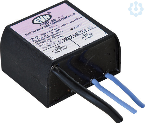 Elektronischer Halogentrafo mit MM-Kennzeichnung. Da der Trafo die Schutzart IP65 besitzt, ist dieser auch fuer den Einsatz im Außenbereich oder Feuchtraum geeignet. Technische Daten: ta:0°.C - 55°.C, tc: 80°.C, Toleranz Ausgangsspannung: +/-10