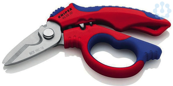 Universalschere für Elektriker, Präziser Schnitt: rutschfrei dank Feinverzahnung auf der Schneide, der menschlichen Hand angepasst: gewinkelte Schneide und Griffgestaltung für besonders ergonomisches Arbeiten, mit Kunststoff-Gürteltasche, mit Crimpstellen für Aderendhülsen von 0,5 - 6 mm² und 10 - 25 mm², Griffe mit Mehrkomponenten-Hüllen, glasfaserverstärkt, Schneiden aus rostfreiem Stahl, Schneidenhärte 56 HRC.