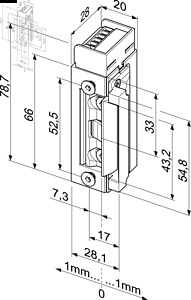 ohne Schließblech, Radiusfalle, FaFix® 2 mm verstellbar, Neue Anschlusstechnik, umsteckbarer Anschlussblock, 12 bis 24 Volt Spannungsbereich bei AC und DC Betrieb, Dauerstromfest über gesamten Spannungsbereich, Alle Modelle universal (DR/DL/waagerecht) montierbar, Integrierte Suppressordiode, Kompatibel zu ProFix® 1 Schließblechen, Vorlastmodus 400N / 800N einstellbar, Jede Variante kann rechts, links oder waagerecht montiert werden. Bei eingeschränkten Platzverhältnissen kann der Anschlussblock bauseits umgesteckt werden.