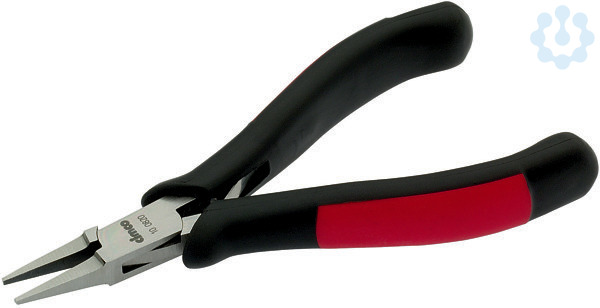 Elektonik - Flachzange 130 MM Präzisions-Elektronikzangen mit durchgestecktem Gelenk, gesenkgeschmiedete Ausführung hochpräzise Ausführung aus Spezialstahl, leicht selbstöffnend durch Doppelblattfedern, hohe Standzeit, Flächen fein geschliffen, mit ergonomischen Zwei-Komponenten Griffhüllen (in ESD oder 1000 V Ausführung auf Anfrage glatte schmale Backen 2, 0 x 1, 0 mm