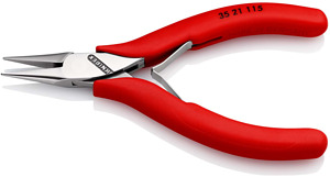 35 21 115 Elektronik-Greifzange Präzisionszangen für feine Montagearbeiten, z. B. in Elektronik und Feinmechanik. Zum Greifen, Halten und Biegen. Durchgestecktes Präzisionsgelenk. Glatt geschliffene Greifflächen. Kanten sorgfältig entgratet. Reibungsarme Doppelfeder für ein sanftes und gleichmäßiges Öffnen. Die Politur oder Spiegelpolitur bietet in Verbindung mit einem feinen Ölfilm einen guten Rostschutz ? keine Störungen im Schaltkreis durch abblätternde Chromteile. flach-runde Backen. - Backenlänge (B): 22,5mm - Backendicke (am Gelenk) (D): 6,5mm - Spitzenbreite (E): 2,0mm - Spitzendicke (F): 1,5mm - Kopfbreite (A): 11,0mm