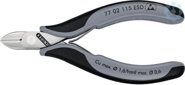 77 02 115 ESD Elektronik-Seitenschneider ESD Für feine Schneidarbeiten, z. B. in Elektronik und Feinmechanik. Griffe elektrisch ableitend ? dissipativ. Stabiles, durchgestecktes und spielfreies Gelenk. Reibungsarme Doppelfeder für ein sanftes und gleichmäßiges Öffnen. Die Spiegelpolitur bietet in Verbindung mit einem feinen Ölfilm einen guten Rostschutz ? keine Störungen im Schaltkreis durch abblätternde Chromteile. Schneiden zusätzlich induktiv gehärtet, Schneidenhärte ca. 62 HRC. Griffe mit zweifarbigen Mehrkomponenten-Hüllen schwarz/grau. runder Kopf, mit kleiner Facette. Schneidenhärte ca. 60 HRC. - Schneidwerte mittelharter Draht (Durchmesser): Ø 1,2mm - Schneidwerte harter Draht (Durchmesser): Ø 0,6mm - Schneidwerte weicher Draht (Durchmesser): Ø 0,3???1,6mm - Backenlänge (B): 14mm - Backendicke (am Gelenk) (D): 7,5mm - Kopfbreite (A): 11mm - ESD: Ja