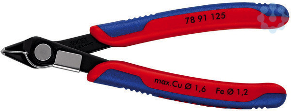 78 91 125 Electronic Super Knips® Präzisionszangen für feinste Schneidarbeiten, z. B. in Elektronik und Feinmechanik. Geschliffene, sehr scharfe Schneiden ohne Facette. Exakt geformte Spitzen schneiden auch anliegende Drähte ab Ø 0,2 mm. Scherschnitt mit kontrolliertem Micro-Schneidkantenversatz für lange Lebensdauer und ultrapräzisen Schnitt auch dünnster Drähte. Gelenk mit Edelstahlniet. Extrem leichter Gang für ermüdungsarmes Arbeiten. Mit Öffnungsfeder und Öffnungsbegrenzung. präzisionsgeschliffene Schneiden mit sehr kleiner Facette auch für harten Draht. mit Drahtklemme - kein unkontrolliertes Wegspringen der Drahtabschnitte. Schneiden zusätzlich induktiv gehärtet, Schneidenhärte ca. 64 HRC. Spezial-Werkzeugstahl, brüniert. - Schneidwerte mittelharter Draht (Durchmesser): Ø 1,2mm - Schneidwerte harter Draht (Durchmesser): Ø 0,6mm - Schneidwerte weicher Draht (Durchmesser): Ø 0,2???1,6mm - Backenlänge (B): 9mm - Backendicke (am Gelenk) (D): 7,5mm - Kopfbreite (A): 13,5mm