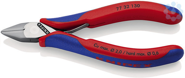 77 42 115 Elektronik-Seitenschneider Für feine Schneidarbeiten, z. B. in Elektronik und Feinmechanik. Belastungsoptimierte Formgebung für ein direkteres Arbeitsgefühl. Stabiles, durchgestecktes und spielfreies Gelenk. Reibungsarme Doppelfeder für ein sanftes und gleichmäßiges Öffnen. Die Politur oder Spiegelpolitur bietet in Verbindung mit einem feinen Ölfilm einen guten Rostschutz ? keine Störungen im Schaltkreis durch abblätternde Chromteile. Schneiden zusätzlich lasergehärtet, Schneidenhärte mindestens 60 HRC. Schlanke, zum Zangenkopf hochgezogene Hüllen bieten sichere und komfortable Führung auch zwischen Daumen und Zeigefinger. spitzer Kopf ohne Facette. Schneidenhärte ca. 57 HRC. - Schneidwerte mittelharter Draht (Durchmesser): Ø 0,8mm - Schneidwerte weicher Draht (Durchmesser): Ø 0,3???1,3mm - Backenlänge (B): 14mm - Backendicke (am Gelenk) (D): 7,5mm - Kopfbreite (A): 11mm