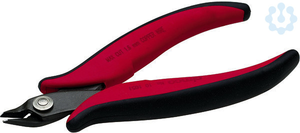 Elektronik-Seitenschneider mit verstärkter Schneide, ohne Schneidwate, Anstellwinkel 21 Grad, Länge 132mm, für weiche Drähte bis 1, 0mm Durchmesser Präzisions-Elektronikzangen mit durchgestecktem Gelenk, gesenkgeschmiedete Ausführung hochpräzise Ausführung aus Spezialstahl, leicht selbstöffnend durch Doppelblattfedern, hohe Standzeit, Flächen fein geschliffen, mit ergonomischen Zwei-Komponenten Griffhüllen (in ESD oder 1000 V Ausführung auf Anfrage)