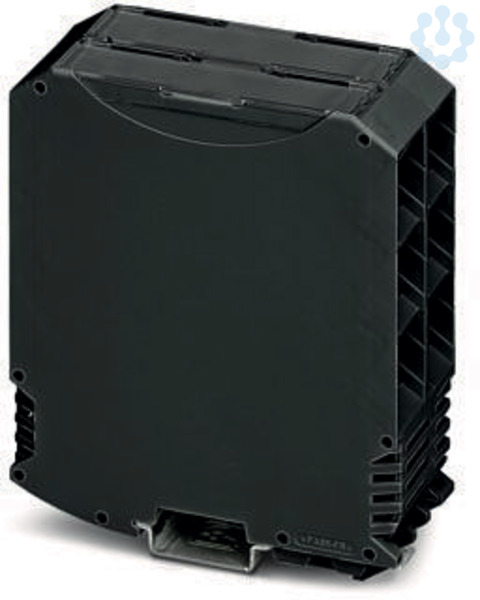 Tragschienengehäuse, Komplettgehäuse mit Metallfußriegel, hohe Bauform, mit Lüftungsschlitzen, Breite: 45,2 mm, Höhe: 99 mm, Tiefe: 113,65 mm, Farbe: schwarz (9005), Querverbindung: Tragschienen-Busverbinder (optional), Polzahl Querverbinder: 5