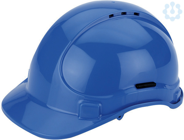 Leichter und moderner Kopfschutz nach DIN EN 50365 aus HDPE (Polyethylen), Schutzklasse 0, hygienisches Stirn-Schweißband, seitliche Schlitze zur Befestigung von Gehör- oder Gesichtsschutz, Ratschenkopfband, Innengurtband-Ausstattung, für Kopfgrößen 54 ?? 61 cm, Gewicht: 330 g