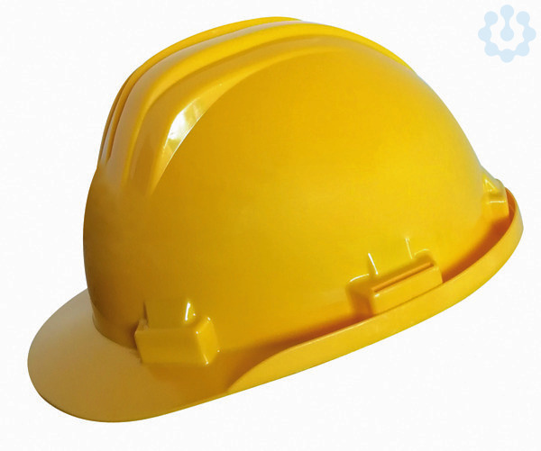 Leichter und moderner Kopfschutz nach DIN EN 50365 aus HDPE (Polyethylen), Schutzklasse 0, hygienisches Stirn-Schweißband, seitliche Schlitze zur Befestigung von Gehör- oder Gesichtsschutz, Ratschenkopfband, Innengurtband-Ausstattung, für Kopfgrößen 54 ?? 61 cm, Gewicht: 330 g