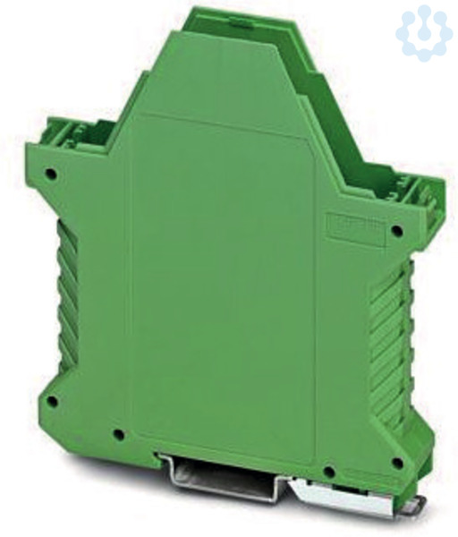 Tragschienengehäuse, Gehäuseunterteil mit Metallfußriegel, mit FE-Kontakt, hohe Bauform, ohne Lüftungsschlitze, Breite: 17,6 mm, Höhe: 99 mm, Tiefe: 107,3 mm, Farbe: grün (6021), Querverbindung: ohne Busverbinder, Polzahl Querverbinder: nicht relevant