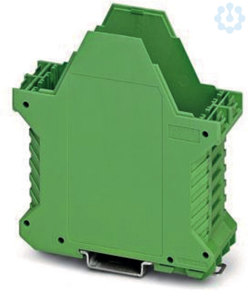 Tragschienengehäuse, Gehäuseunterteil mit Metallfußriegel, mit FE-Kontakt, hohe Bauform, ohne Lüftungsschlitze, Breite: 35,2 mm, Höhe: 99 mm, Tiefe: 107,3 mm, Farbe: grün (6021), Querverbindung: ohne Busverbinder, Polzahl Querverbinder: nicht relevant