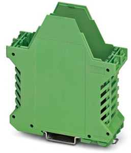 Tragschienengehäuse, Gehäuseunterteil mit Metallfußriegel, mit FE-Kontakt, hohe Bauform, mit Lüftungsschlitzen, Breite: 35,2 mm, Höhe: 99 mm, Tiefe: 107,3 mm, Farbe: grün (6021), Querverbindung: ohne Busverbinder, Polzahl Querverbinder: nicht relevant