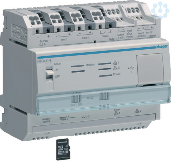 , REG, 6 PLE, Micro SD Karte. Der Energiemonitoring-Server sammelt, speichert und verarbeitet die Messwerte der angeschlossenen Produkte. Diese Daten können dann über die integrierte LAN-Schnittstelle und durch die Webserverfunktionalität mit verschiedenen Internet Browsern verschiedener Endgeräte (PC, Notebook, Tablett) über das Netzwerk betrachtet und per CSV-Format exportiert werden. Durch die Benachrichtigungsfunktion per Email besteht die Möglichkeit Alarmmeldungen weiterzuleiten (Grenzwertüberschreitungen, Stör-/Fehlermeldungen usw.). Das Gerät unterstützt bei der Bewertung nach DIN VDE 0100-801 und visualisiert dies. Die Kommunikationsbasis zwischen dem Energiemonitoring-Server und den Messgeräten ist ModbusRTU (Master-Slave-Prinzip). Durch den im Server hinterlegten Produktkatalog ist eine schnelle Parametrierung ohne das Nutzen von Modbus-Mapping-Tabeln möglich. Der Energiemonitoring-Server verfügt über zwei Digital-Eingänge (z.B. für den Anschluss von Impulsau