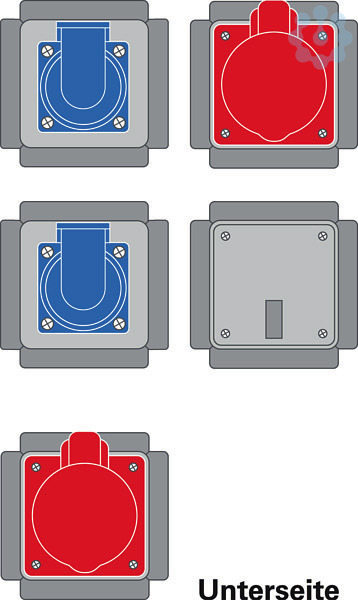 Der abhängbare Energiewürfel ist anschlussfertig verdrahtet. Jeder Energiewürfel, einschließlich der Einbaugeräte, ist stückgeprüft nach EN 61439-3. Der gesamte Energiewürfel ist spritzwassergeschützt nach IP 44. Das Gehäuse wird aus dem Kunststoff Polyamid gefertigt. Dieser hochwertige Kunststoff zeichnet sich besonders durch seine hervorragende Festigkeit und Zähigkeit aus. Die Gehäusefarbe ist lichtgrau (elektrograu). Ohne Einbauten hat der Würfel die Abmessung von (HxBxT) 160 x 104 x 104 mm. Der Energiewürfel ist mit 2 x SCHUKO-Steckdosen und 2 x CEE 5/16A 400V 6h bestückt. Das Gehäuse hat einen Aufhängebügel und eine Leitungseinführung (Verschraubung) von oben. Die Verschraubung ist für eine Zuleitung von 3 x 1,5 mm² bis zu 5 x 6 mm² geeignet. Der Außendurchmesser der Zuleitung darf maximal 19 mm betragen. Zum Anschluss der Zuleitung steht ein Klemmstein zur Verfügung. Der Klemmstein ist für eine Zuleitungen von 5 x 6 mm² (starr) geeignet.